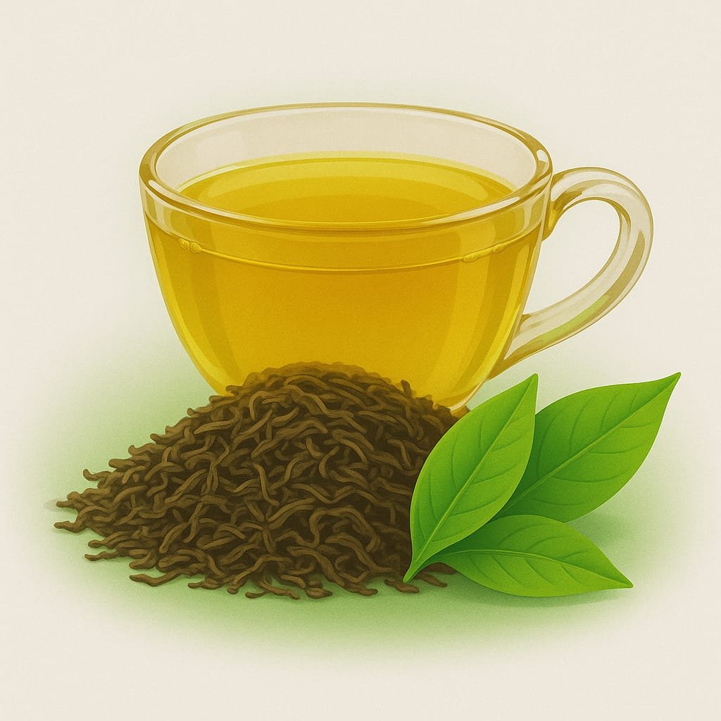 Green tea is a minimally oxidized tea made from the leaves of the Camellia sinensis plant. Unlike black tea, the leaves are quickly steamed or pan-fired after harvesting to halt oxidation, preserving their green colour and fresh, grassy flavour.